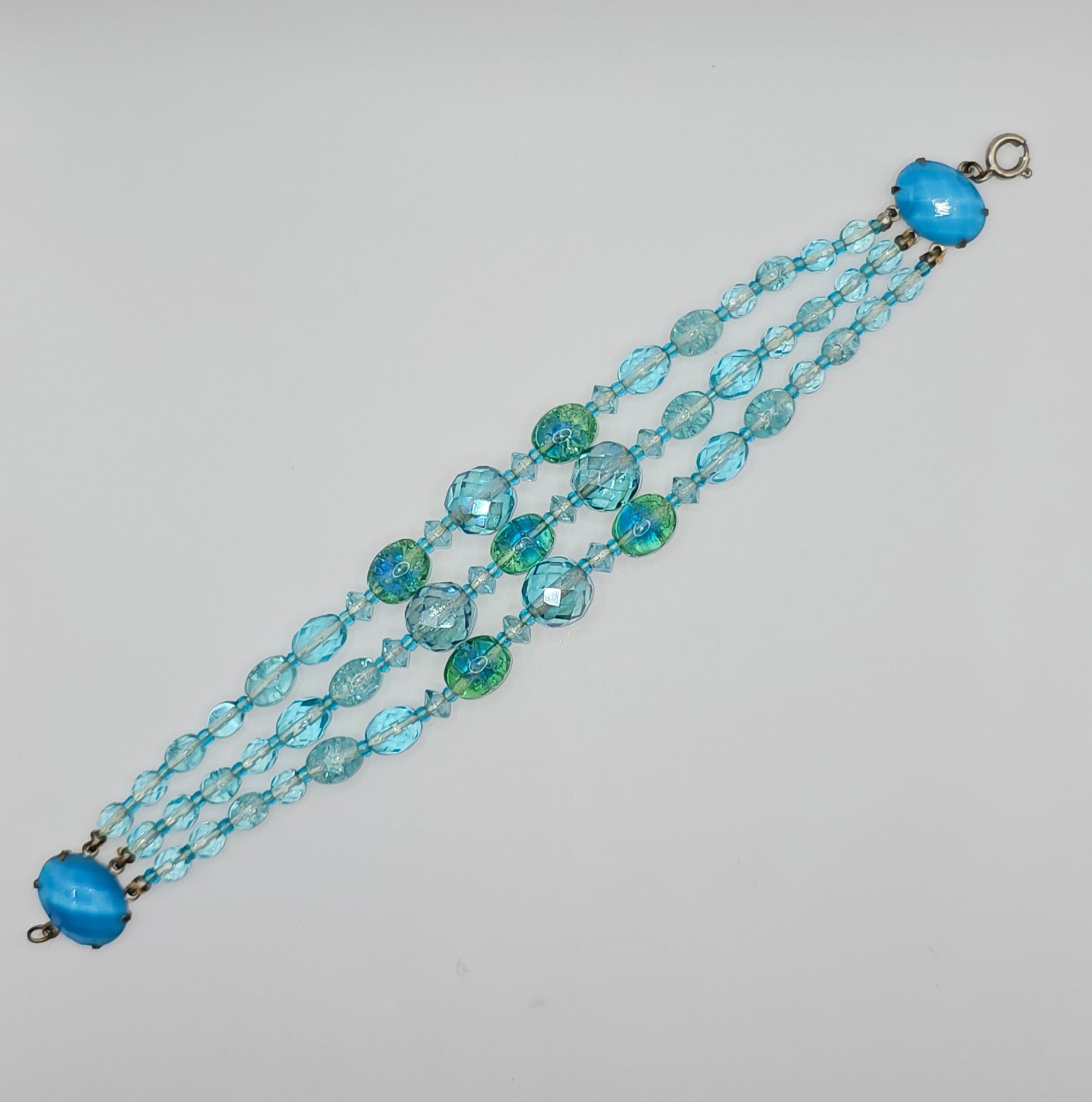 Elevate your style with this 9" Aquamarine colored glass-faced bead bracelet. Its shimmering beads capture light beautifully, adding a touch of elegance to any outfit. Lightweight and comfortable, it’s perfect for daily wear or special occasions, making it a versatile accessory that enhances your look effortlessly.