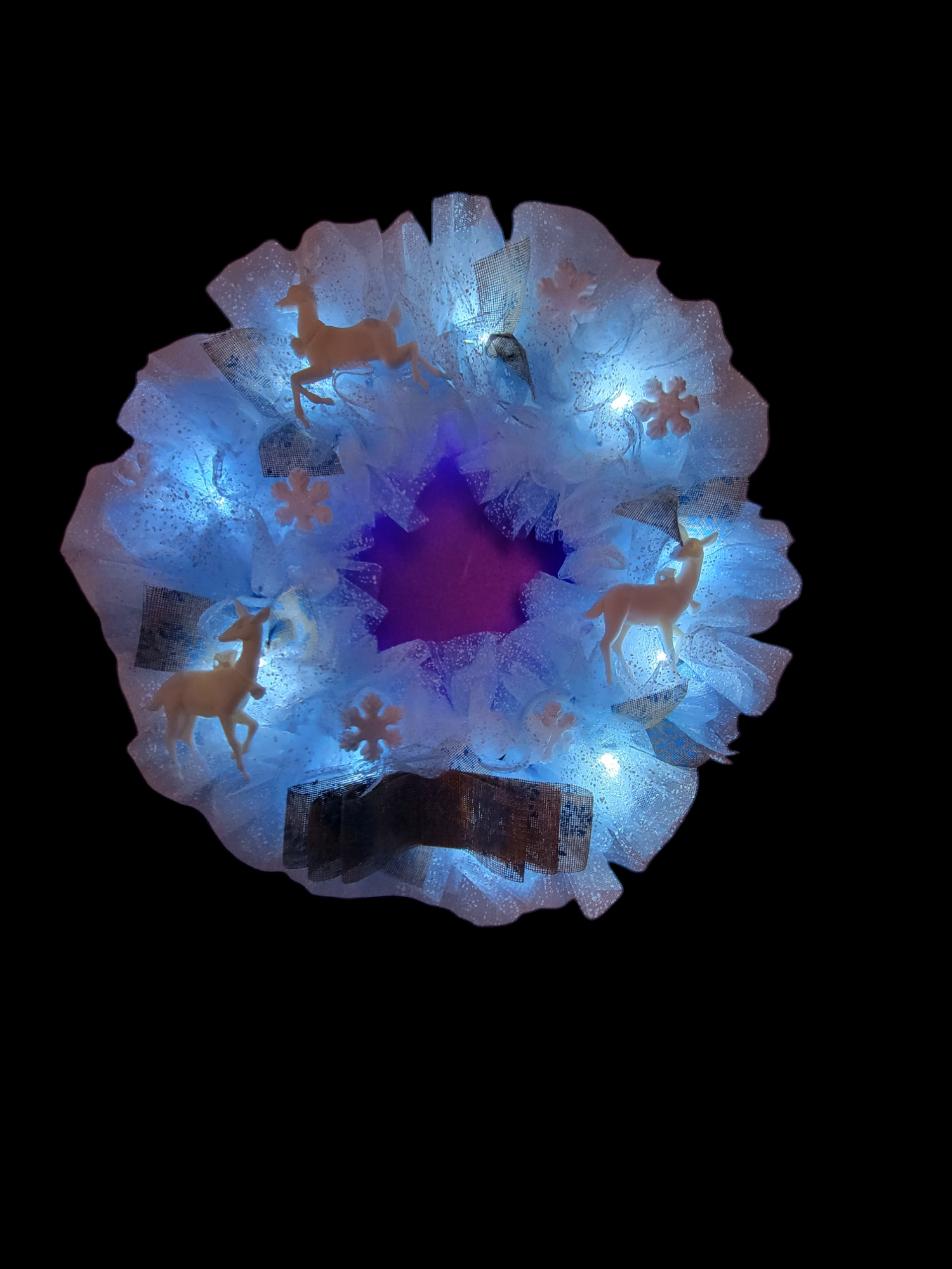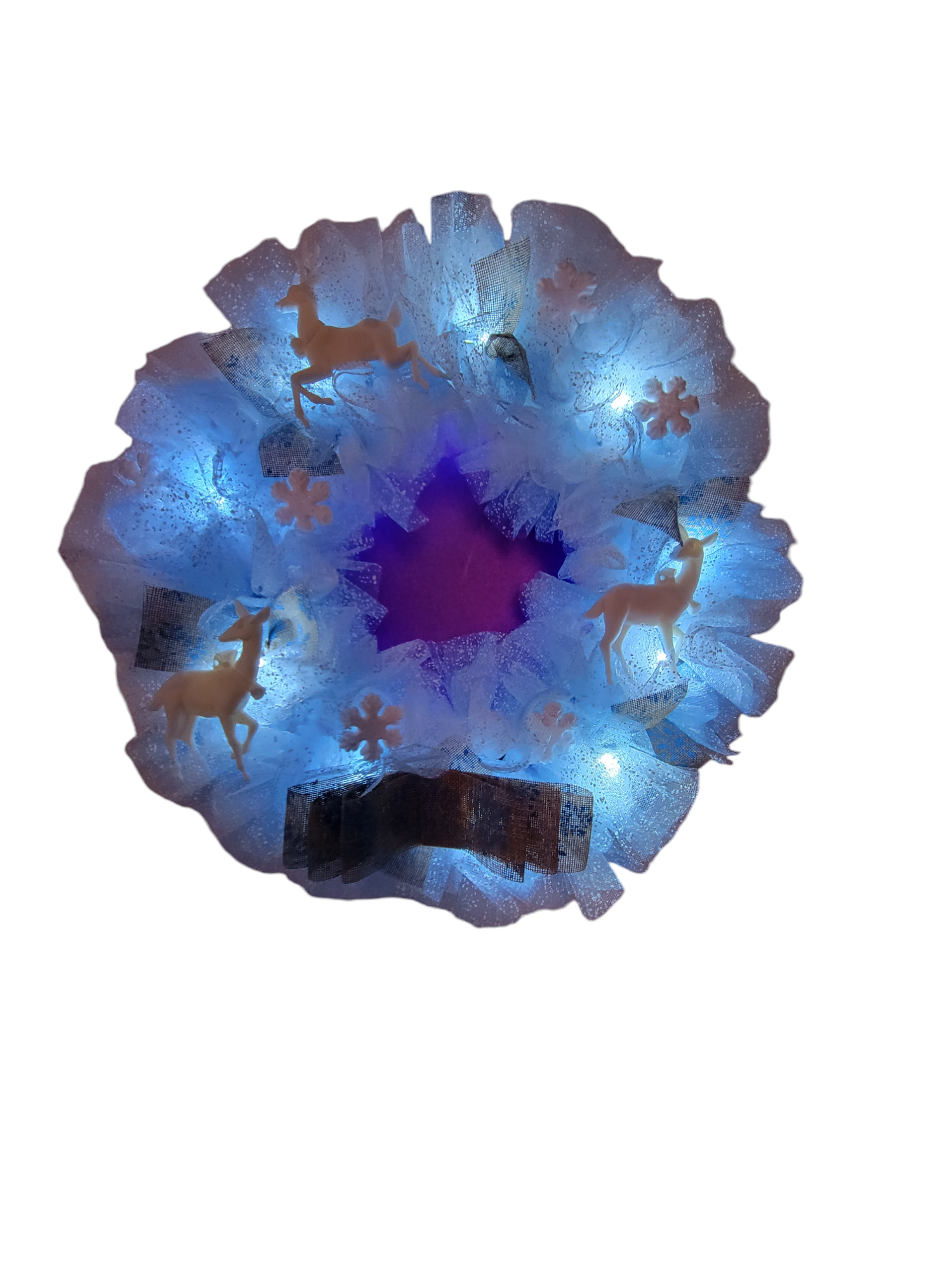 Bring the magic of a snowy forest to your door with this handmade "Winter Wonderland" tulle wreath. Soft, fluffy tulle creates a cozy, festive look, while included lights add a warm, twinkling glow. Customize it with your own ideas to make it truly yours. Please allow 7-10 business days for your special creation to be ready to ship. Perfect for adding a playful touch of winter cheer to your holiday décor!