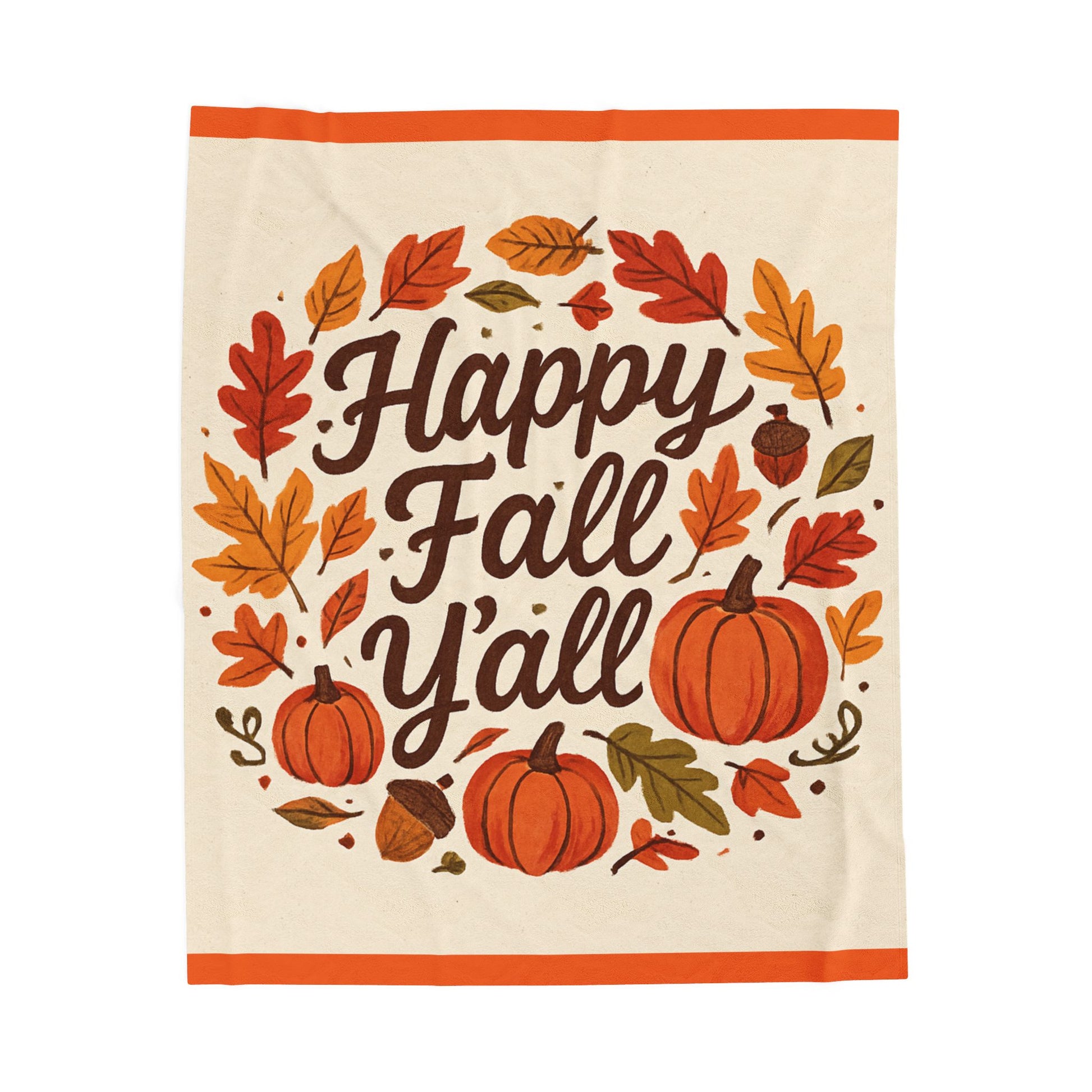 Cozy Fall Velveteen Blanket, Autumn Decor, Happy Fall Y'all, Pumpkin Throw, Thanksgiving Gift, Seasonal Home Textile